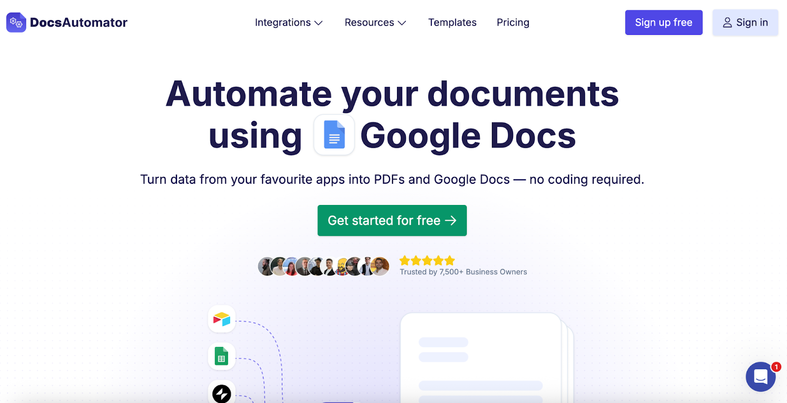 DocsAutomator also connects with ClickUp, NoLoco, Google Sheets, Glide, SmartSuite, and Zapier. You can also explore PDF Generation API for more flexibility.