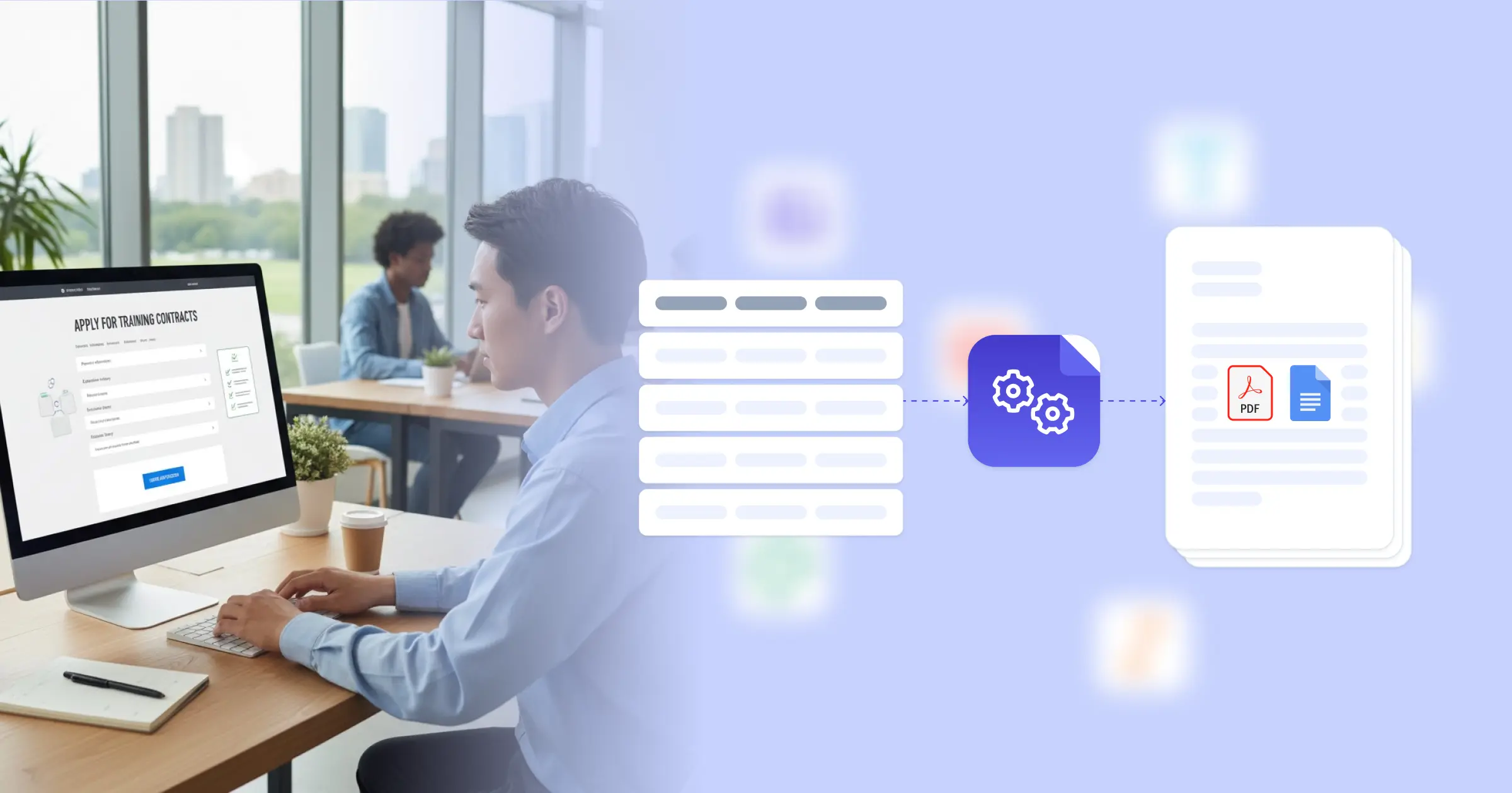 Training contract applications formalize the relationship between organizations and individuals entering apprenticeships, internships, graduate programs, or professional development tracks. Research from McKinsey on workplace learning trends 2025 indicates that organizations need fluid development ecosystems that use meaningful data and foster continuous learning, adaptability, and collaboration. HR teams traditionally collect applicant information from recruiting systems, program details from training coordinators, and approval signatures from department managers before manually assembling each contract. This administrative burden is eliminated through seamless integration: when you connect Google Docs templates with your HRIS, Airtable candidate database, or ClickUp training tracker, contracts generate with trainee names, program specifics, start dates, and compensation terms already populated. Your HR coordinators send agreements to approved candidates immediately after selection decisions.