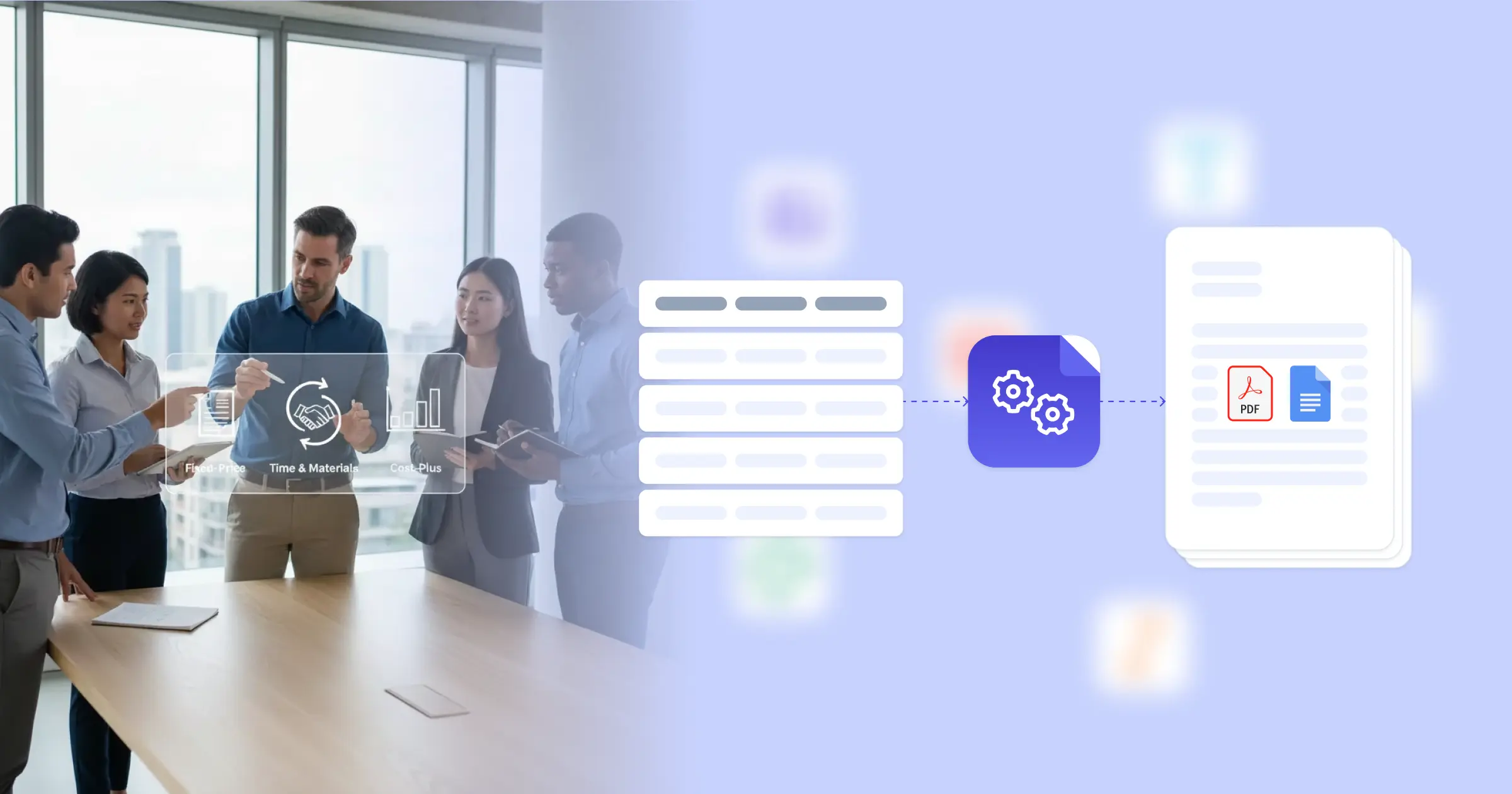 Different types of contracts in project management serve different project characteristics and risk allocations, from fixed-price agreements that shift risk to contractors to cost-plus structures that require detailed cost documentation. Research from Harvard Business Review on project management shows that selecting appropriate contract structures based on project certainty and risk profiles improves project outcomes. Project teams traditionally create contracts by selecting from multiple template variations and manually adjusting terms to match project requirements. This transformation is powered by connecting your Google Docs templates with your project planning platform, Airtable project database, or estimating system, so contracts generate with appropriate structures, terms, and pricing mechanisms based on project configuration. Your procurement team produces properly structured contracts without manual template selection.