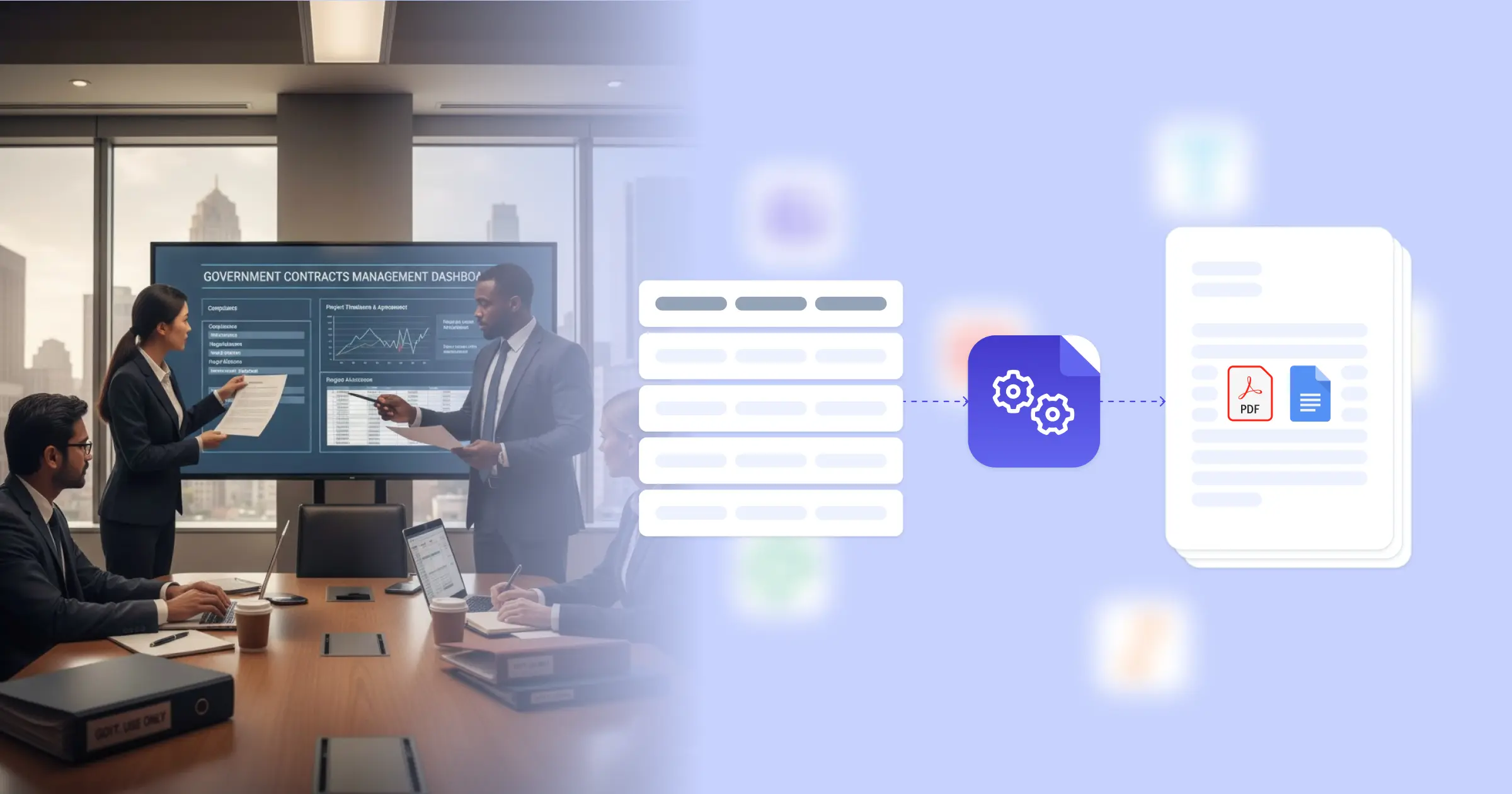 Government contracts management involves extensive documentation requirements that differ significantly from commercial contracting, with mandatory clauses, compliance reporting, and detailed record-keeping throughout the contract lifecycle. Federal, state, and local agencies, along with their contractors, manage procurement agreements, modifications, progress reports, and closeout documents that must meet specific regulatory standards. Research from Gartner on public sector technology indicates that documentation burden remains significant in government contracting. You can eliminate this manual friction by connecting your Google Docs templates with your existing contract management systems, whether that's dedicated government CLM software, Airtable tracking your projects, or agency databases accessible via API. This automation pulls contract numbers, FAR clauses, performance data, and compliance information directly into properly formatted documents, letting your team focus on project delivery and agency relationships rather than document assembly.