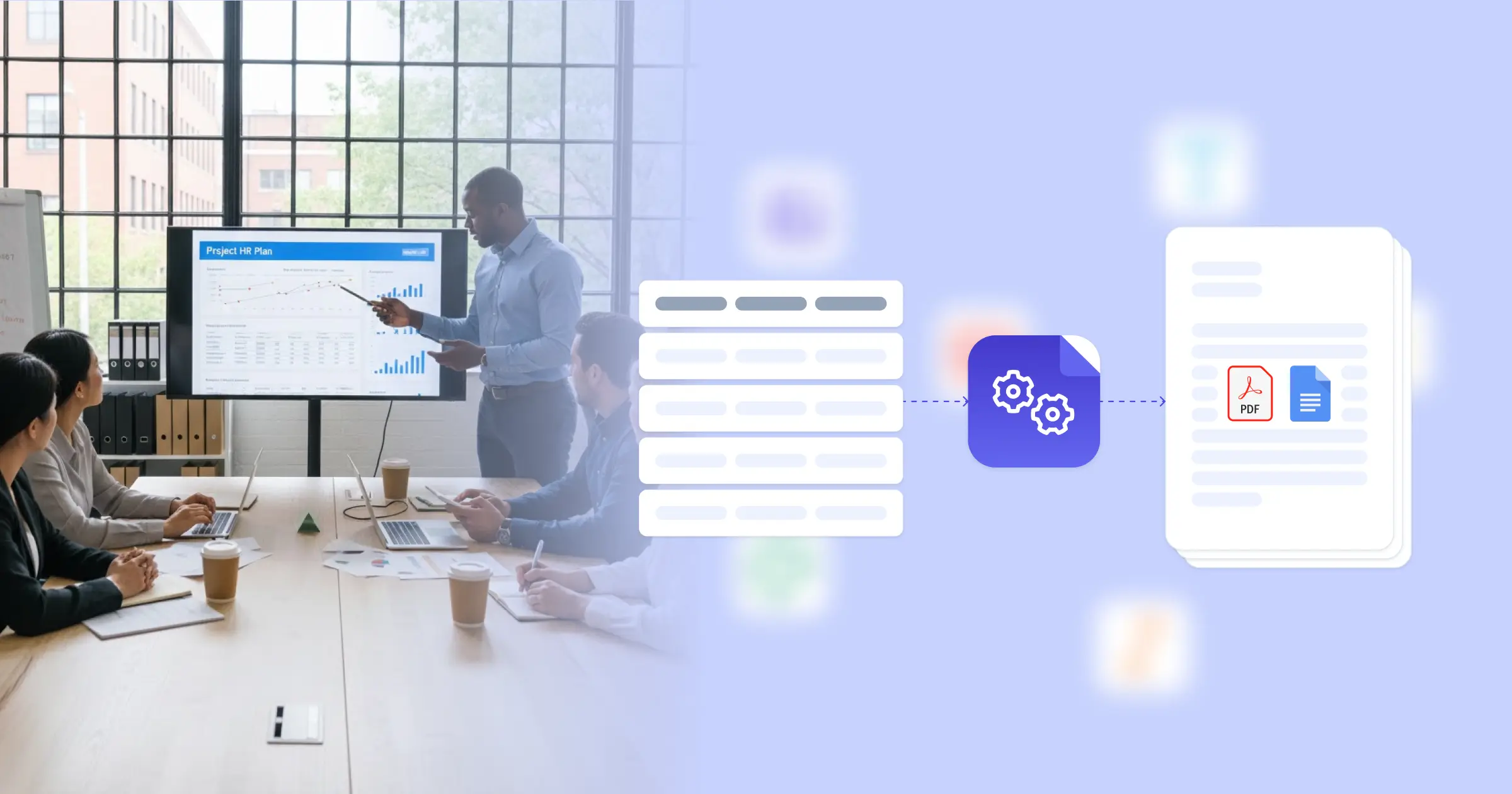 Project management HR plan automation transforms how project teams document resource allocation, staffing requirements, and team structures. Every project needs clear documentation of who's working on what, when they're available, and what skills the project requires, particularly when stakeholders and executives need visibility into resource utilization. According to Gartner research on resource management, effective resource planning becomes increasingly critical as organizations manage larger project portfolios. This planning effectiveness is powered by seamless integration: by connecting your Google Docs templates with your existing data sources, whether that's Airtable, ClickUp, Glide, or project management platforms via API, your HR plans generate automatically. Rather than compiling team assignments, availability calendars, and skill inventories into planning documents by hand, the resource data you're already tracking in your project management system flows directly into formatted planning documents.