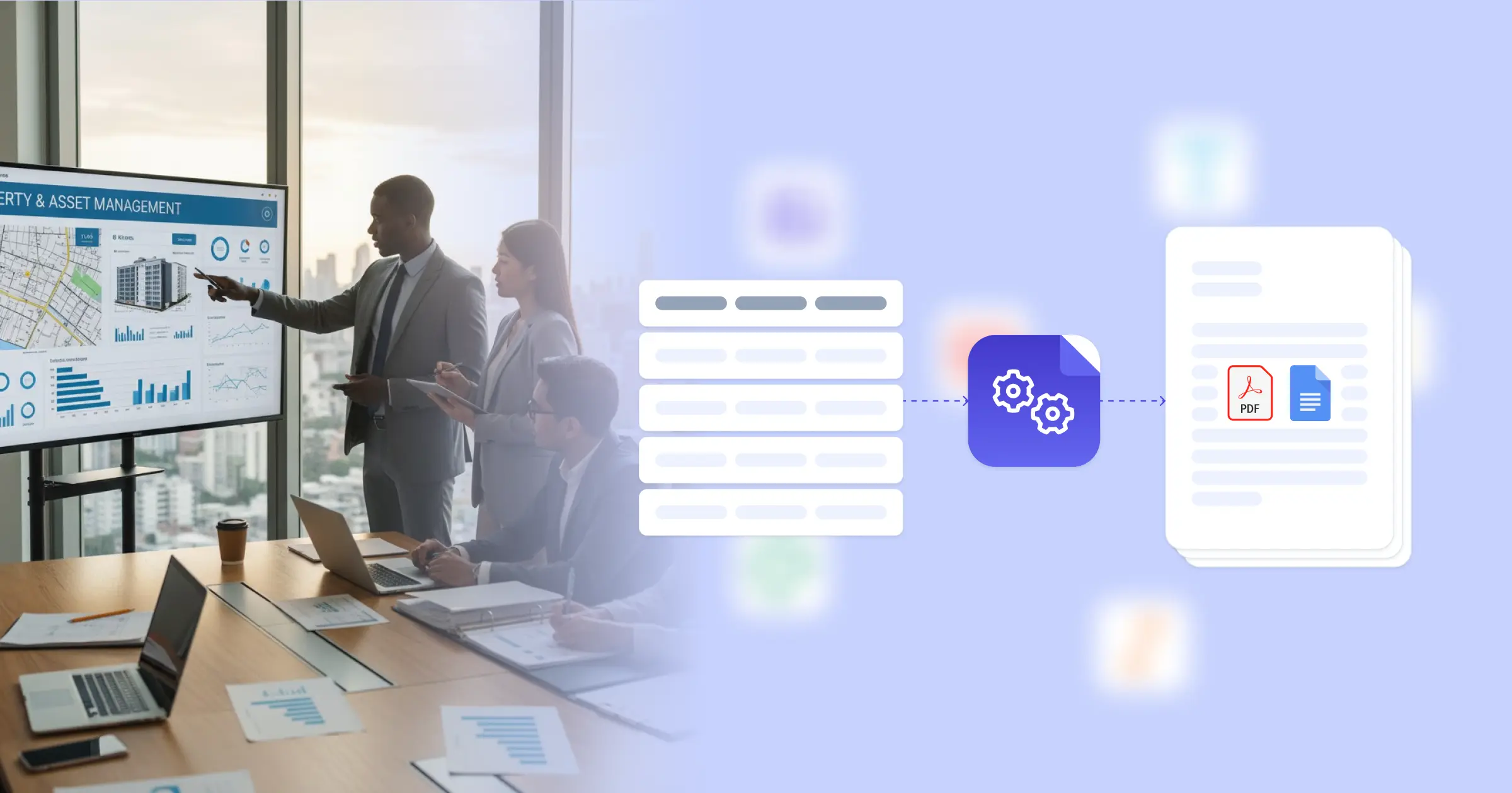 Property and asset management combines the operational demands of managing tenant relationships, maintenance, and compliance with the financial responsibility of tracking asset performance, budgets, and investment returns. Real estate teams manage residential complexes, commercial buildings, or mixed-use portfolios, creating lease documents, inspection reports, financial summaries, and owner communications throughout the property lifecycle. According to Gartner research on real estate technology, document creation remains a significant operational task for property managers. You can eliminate this manual friction by connecting your Google Docs templates with your existing property management systems, whether that's dedicated software like AppFolio or Buildium via APIs, Airtable tracking your properties and tenants, or custom databases. This automation pulls property details, tenant information, maintenance records, and financial data directly into professionally formatted documents, letting your team focus on tenant satisfaction and asset optimization rather than document assembly.