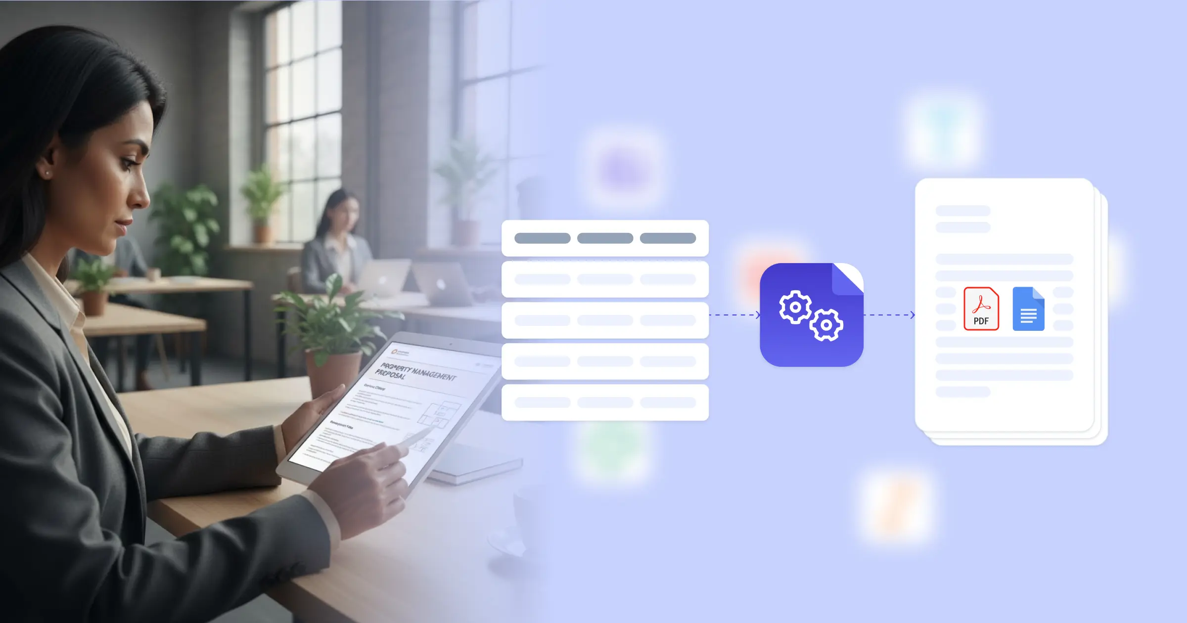 Property management proposal PDFs present service offerings, fee structures, and company qualifications to property owners evaluating management partners. According to National Association of Realtors Technology Survey, professional presentation quality influences owner decisions when selecting property managers. Business development teams traditionally customize proposal templates by copying property details from listing data, fee calculations from pricing spreadsheets, and company information from marketing materials. This transformation is powered by connecting your Google Docs templates with your CRM, Airtable prospect database, or property analysis tools, so proposals generate with accurate property details, calculated fees, and relevant case studies already formatted. Your sales team delivers professional proposals within hours of property owner inquiries.